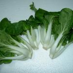 葉身は濃緑、葉柄は純白で色合いがきれいな体菜類。炒め物に適している。